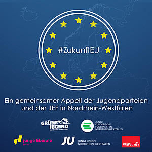 Als Junge Europäische Föderalisten, JungsozialistInnen, Junge Union, Grüne Jugend und Junge Liberale in NRW sind wir uns einig: Für die verbleibende Europäische Union ist jetzt die Zeit gekommen, um über grundlegende europapolitische Fragen nachzudenken, die EU weiterzuentwickeln und die gemeinsame Zusammenarbeit zu intensivieren, ohne dabei das Subsidiaritätsprinzip aufzugeben. Europa darf jetzt nicht resignieren, sondern muss dieser Situation mit Mut und Zuversicht begegnen!
