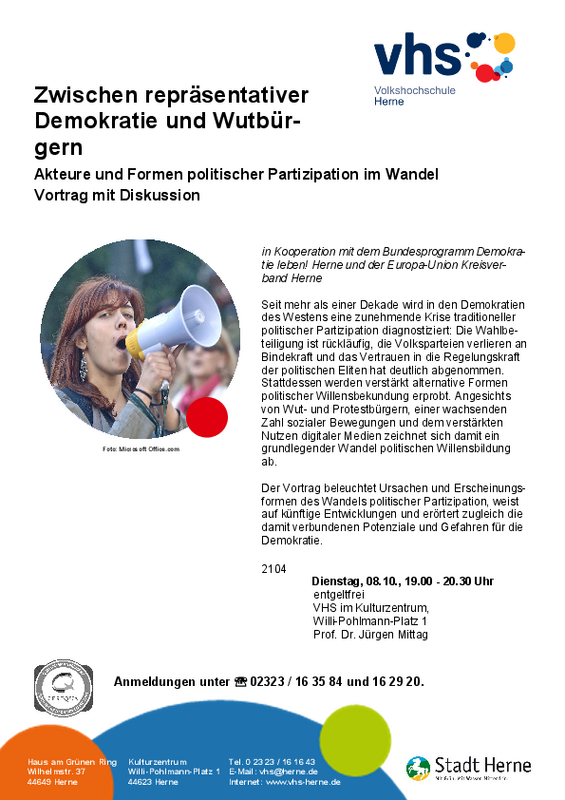 Der Vortrag beleuchtet Ursachen und Erscheinungsformen des Wandels politischer Partizipation, weist auf künftige Entwicklungen und erörtert zugleich die damit verbundenen Potenziale und Gefahren für die Demokratie.