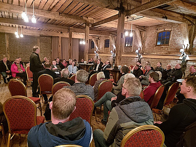 Aus der Landwirtschaft kamen Vorschläge zum Handlungsbedarf und auch die Bitte politische Entscheidungen langfristiger anzulegen, um den investierenden Betrieben Planungssicherheit zu geben. Die Umsetzungen vor Ort umfassten oft sechsstellige Beträge. Beispiel: Gerade eingeführte Luftwäscher in den Ställen verlieren ihre Funktion, wenn bald Freilandhaltung vorgeschrieben wird. Genehmigungsrechtlich werden Öffnungen in Ställen zu statischen Problemen und langwierigen Genehmigungsverfahren. Die junge Generation vermeide teilweise die Übernahme des elterlichen Betriebes, da sie keine Perspektive für sich erkennen kann. Hinterfragt wurde z.B. weiterhin, inwieweit der neu eingeführte so genannte Tierwohlcent zu einer Verbesserung der Tierhaltung führe. Im weiteren Verlauf gab es spannungsgeladene Themen, wie die hiesige Behandlung mit den Saatkrähen und den Auswirkungen und Hilfestellung beim Problemwolf.