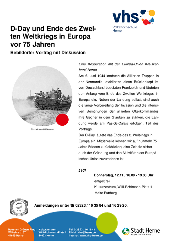 Am 6. Juni 1944 landeten die Alliierten Truppen in der Normandie, etablierten einen Brückenkopf im von Deutschland besetzten Frankreich und läuteten den Anfang vom Ende des Zweiten Weltkrieges in Europa ein. Mittlerweile können wir auf nunmehr 75 Jahre Frieden zurückblicken, eine Zeit die sicher auch der Gründung und den Aktivitäten der Europäischen Union zuzurechnen ist.